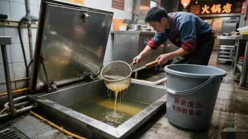 可前几天去的时候,走到几家餐馆集中的路段,我发现了个 “小麻烦”—— 有两家餐馆的墙角,隔油池的井盖缝里正往外冒泡泡,周边的地面油腻腻的,落叶粘在上面,看着特别不美观,凑近还能闻到一股油腥味。我跟其中一家餐馆的老板聊了聊,老板一脸无奈地说:“我们也知道隔油池该清了,可找的人要么清理不彻底,要么收费太贵,一直没找到合适的。”