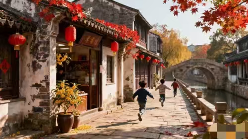 要说江阴哪里最适合 “徒步捡秋”,最近热度很高的忠义街绝对能排上前几名。青石板路两旁种着高大的枫香树,秋天一到,叶子变成橙红色,风一吹就飘落在路上、屋檐上,走在里面就像闯进了油画里。我最近几乎每天都去那边徒步,捡几片好看的叶子做书签,顺便看看街上的小店。